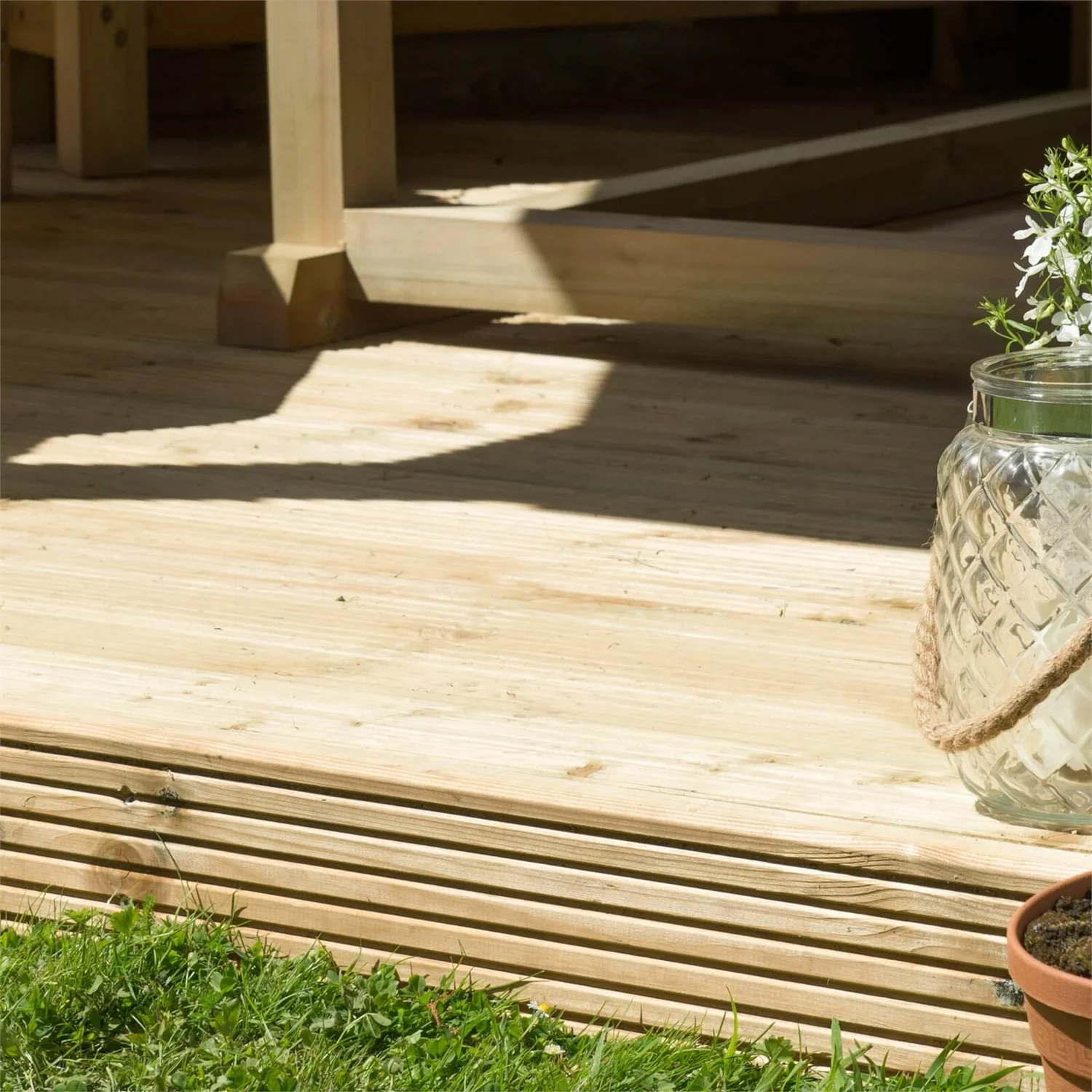 This stylish gazebo comes with a thatched roof made from high quality natural South African reed that is layered around the roof for a classic finish. The inside of the roof is fitted with a green, heavy duty, weather-proof, quality outdoor canvas lining. The structure has immense strength and rigidity that is created by the substantial uprights being secured to the profiled deck board base at the bottom and attached with steel brackets to the perimeter frame at the top. Kiln dried, pressure treated round radiata pine is used to make all our gazebo uprights. This timber has an attractive smooth sanded finish and comes with a 15 year anti-rot guarantee.