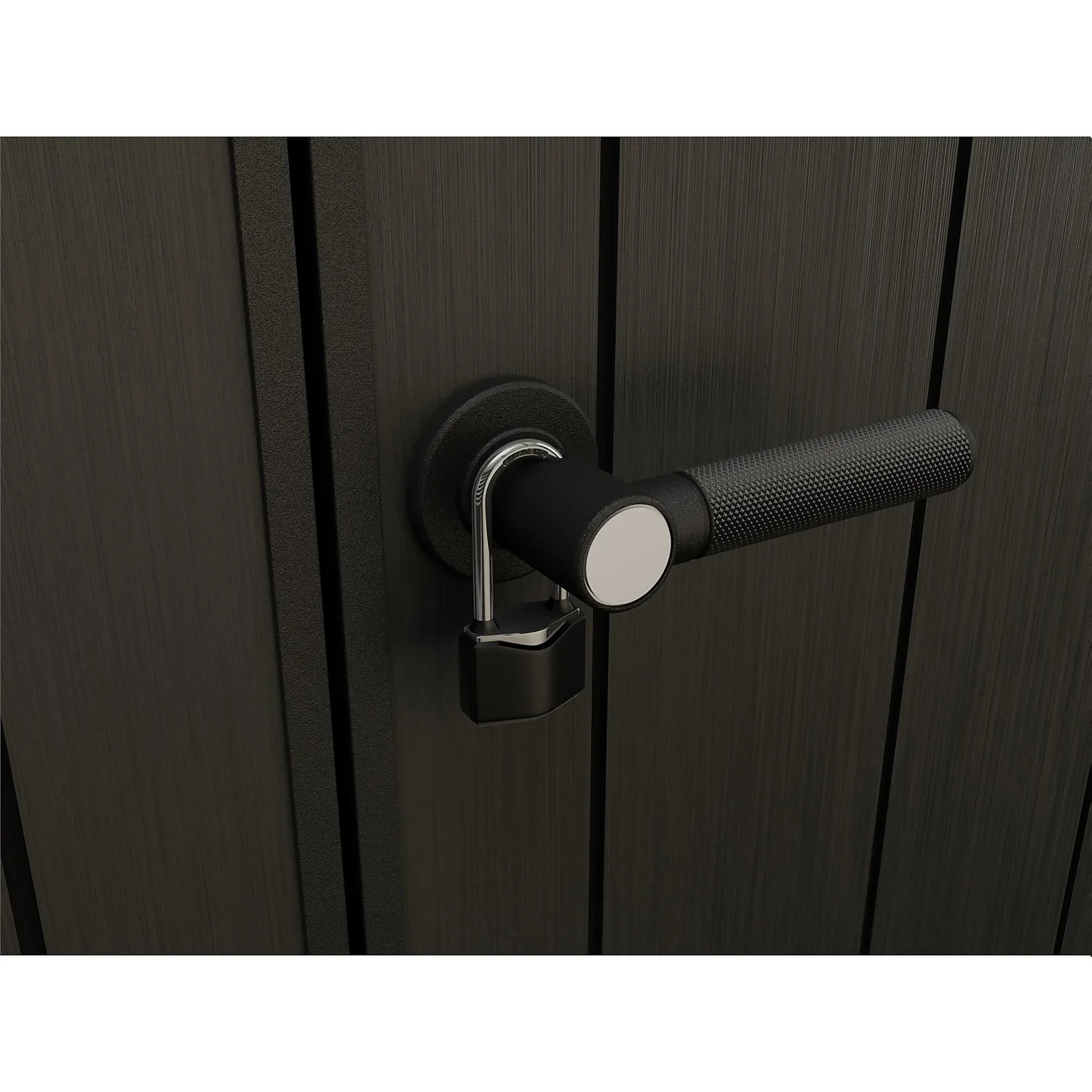 The wide double entry door provides for easy access and has a stainless steel internal locking mechanism for added security and peace of mind and with a steel-reinforced double-wall frame the Newton can withstand rainstorms and snowstorms keeping your tools, furniture and equipment protected no matter what nature throws at it.