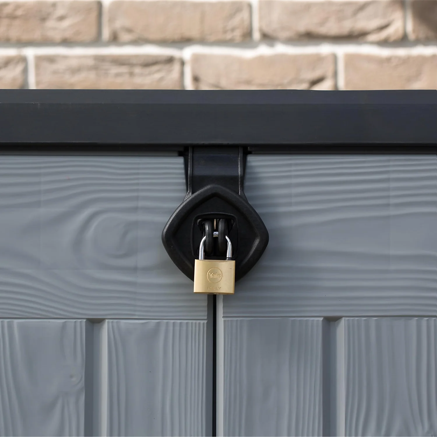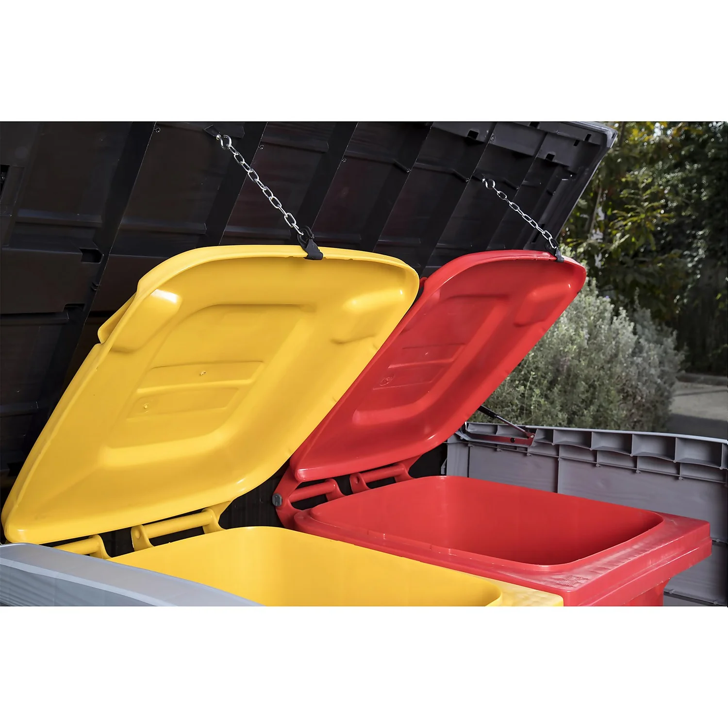 - Ideal outdoor storage solution for garden tools, equipment and x2 240 L wheelie bins