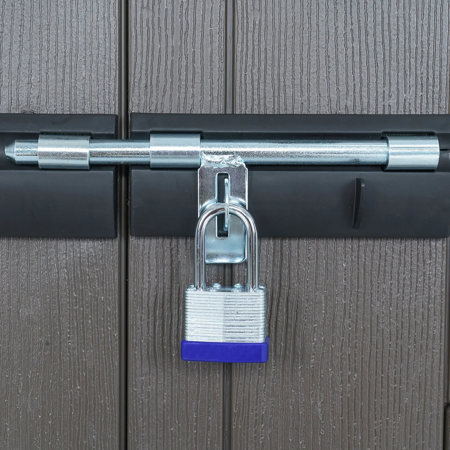 - Lockable steel-reinforced doors for added security (padlock not included)