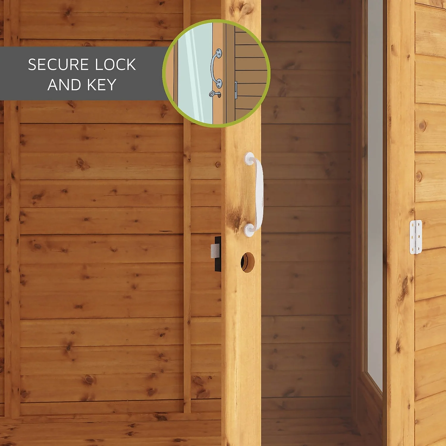 The walls of this summerhouse are constructed using premium horizontal interlocking tongue and groove boards with a shiplap profile. The shiplap profile includes a protective and aesthetically pleasing lip to create a strong, weatherproof panel. Complete with thick wooden framing to support the cladding internally, this building offers a rigid and long-lasting structure.
