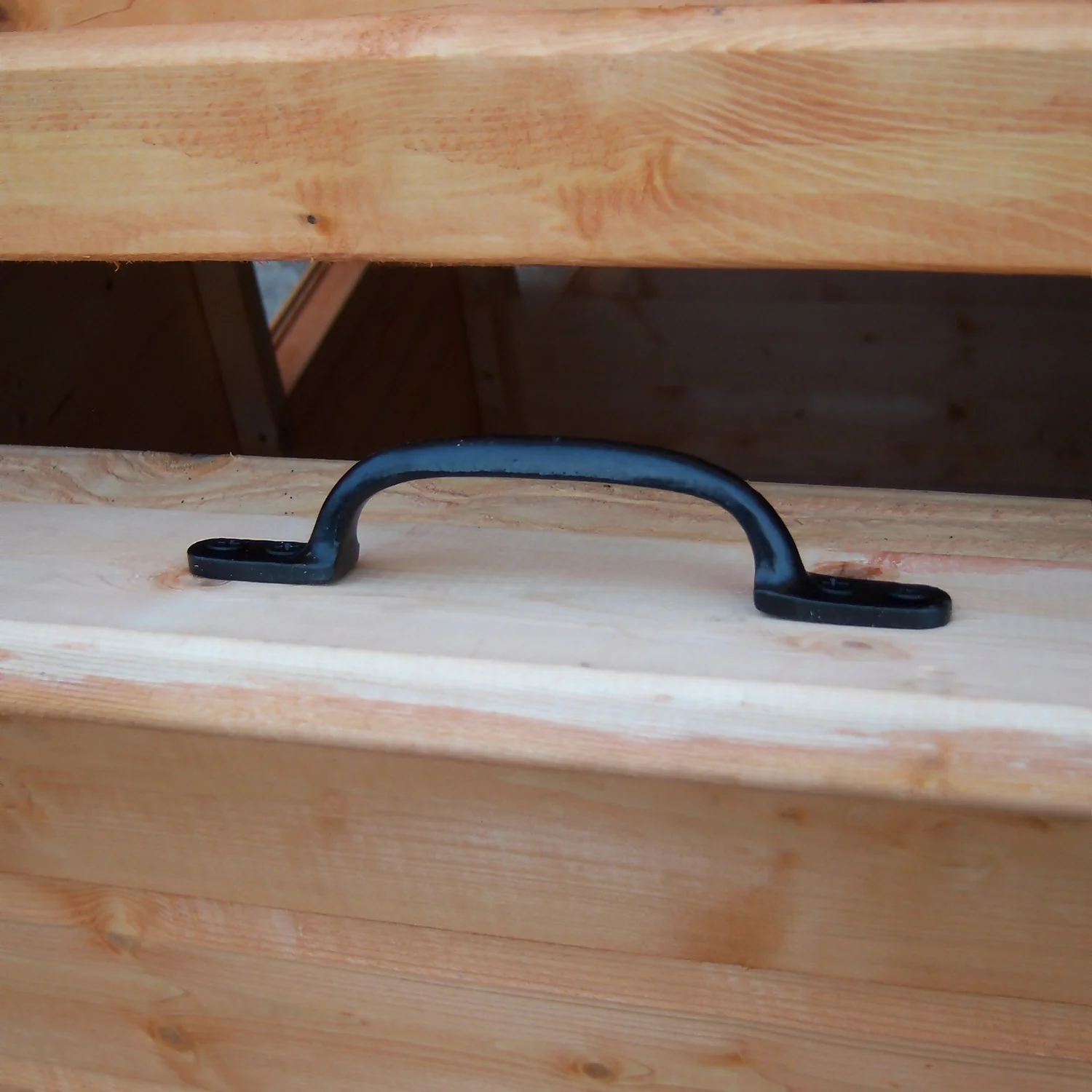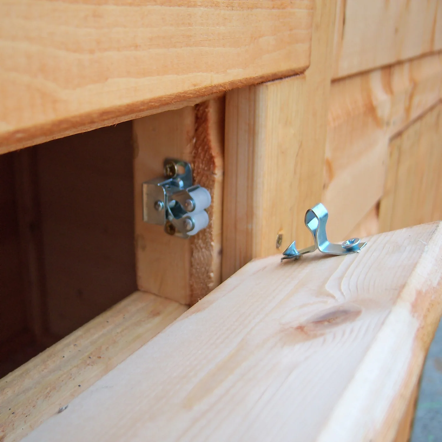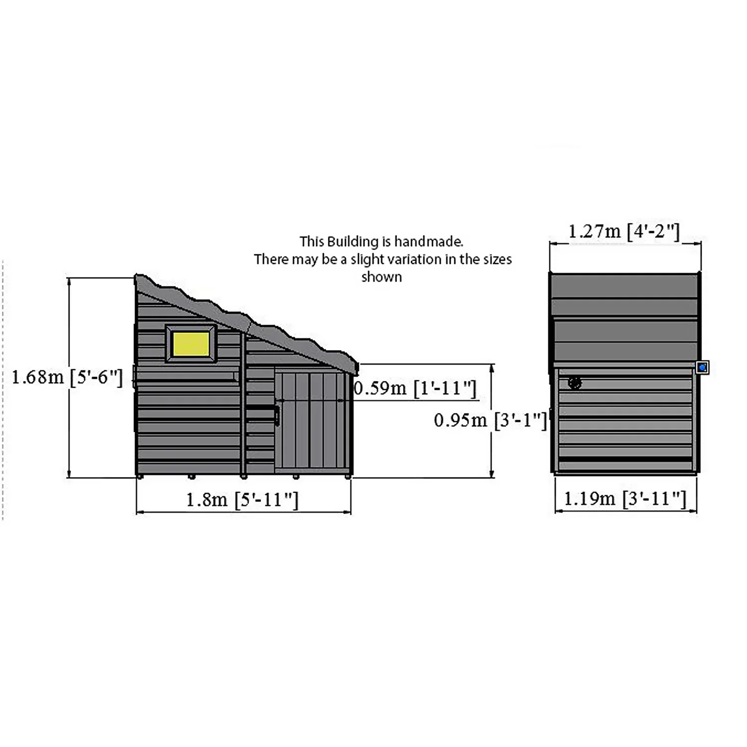 The door is fitted with a full length piano hinge to prevent finger traps and the windows are glazed with Perspex. It is manufactured in tongue and groove (shiplap) from high grade, slow grown, FSC approved, northern European pine shiplap boards.