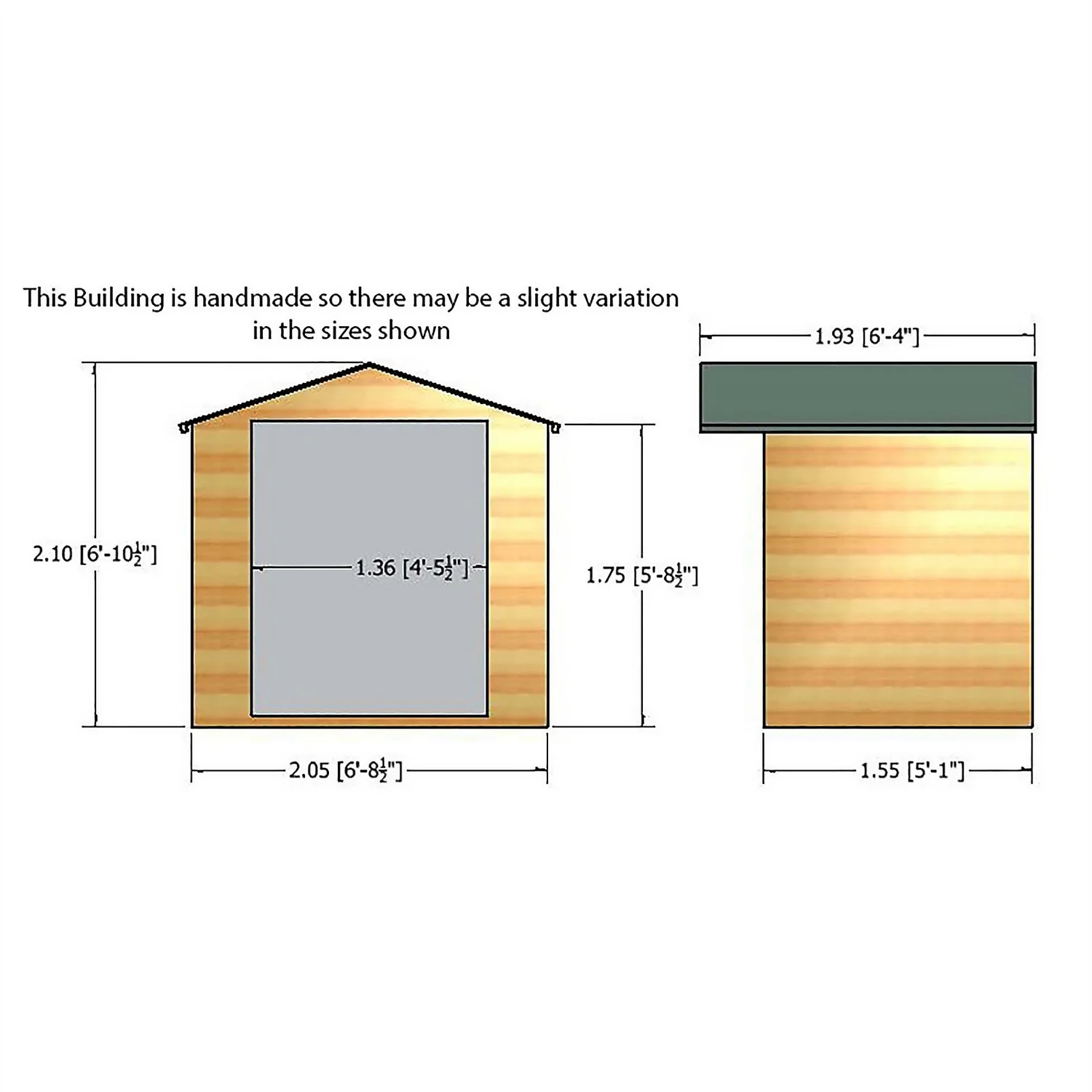The summerhouse is treated with a dip treated honey brown base coat preservative ready for you to top coat immediately after installation. This could be a paint or stain. (Imperial dimensions are approximate to the nearest foot, please refer to the exact metric dimensions in the data given)
