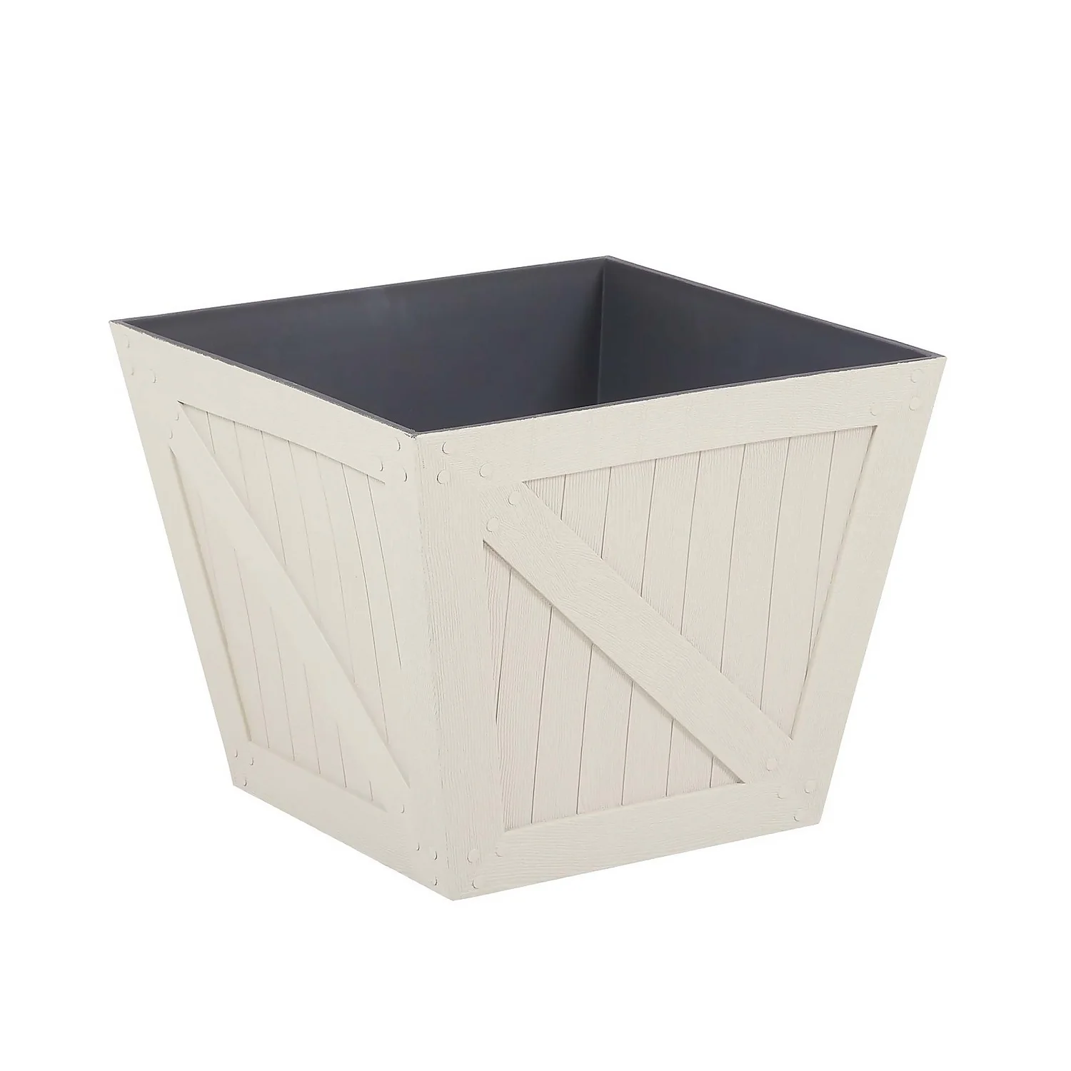 A traditionally styled planter that mimics a wood effect finish. Made from recycled plastic, moulded and finished to look exactly like natural materials such as metal and ceramics, these pots are very lightweight and affordable and when planted up its almost impossible to tell them from traditional conventional materials.
